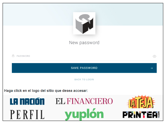 6. Lo llevará a la página para que coloque la nueva contraseña:
