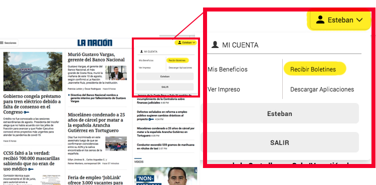 Debe hacer click en el botón de Ingresar ubicado en la parte superior derecha en la página www.nacion.com