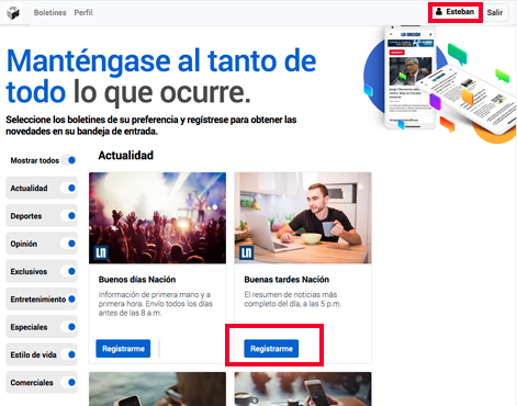 Debe hacer clic en Ingresar y marcar o desmarcar los boletines que desea recibir o dejar de recibir en su correo electrónico.