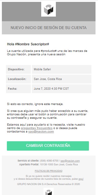 Puede tener un máximo de 2 dispositivos conectados simultáneamente. Adicionalmente le estará llegando a su correo un aviso de logueo o alerta de seguridad en el momento que se loguee desde otro dispositivo. El correo tendrá la siguiente información: