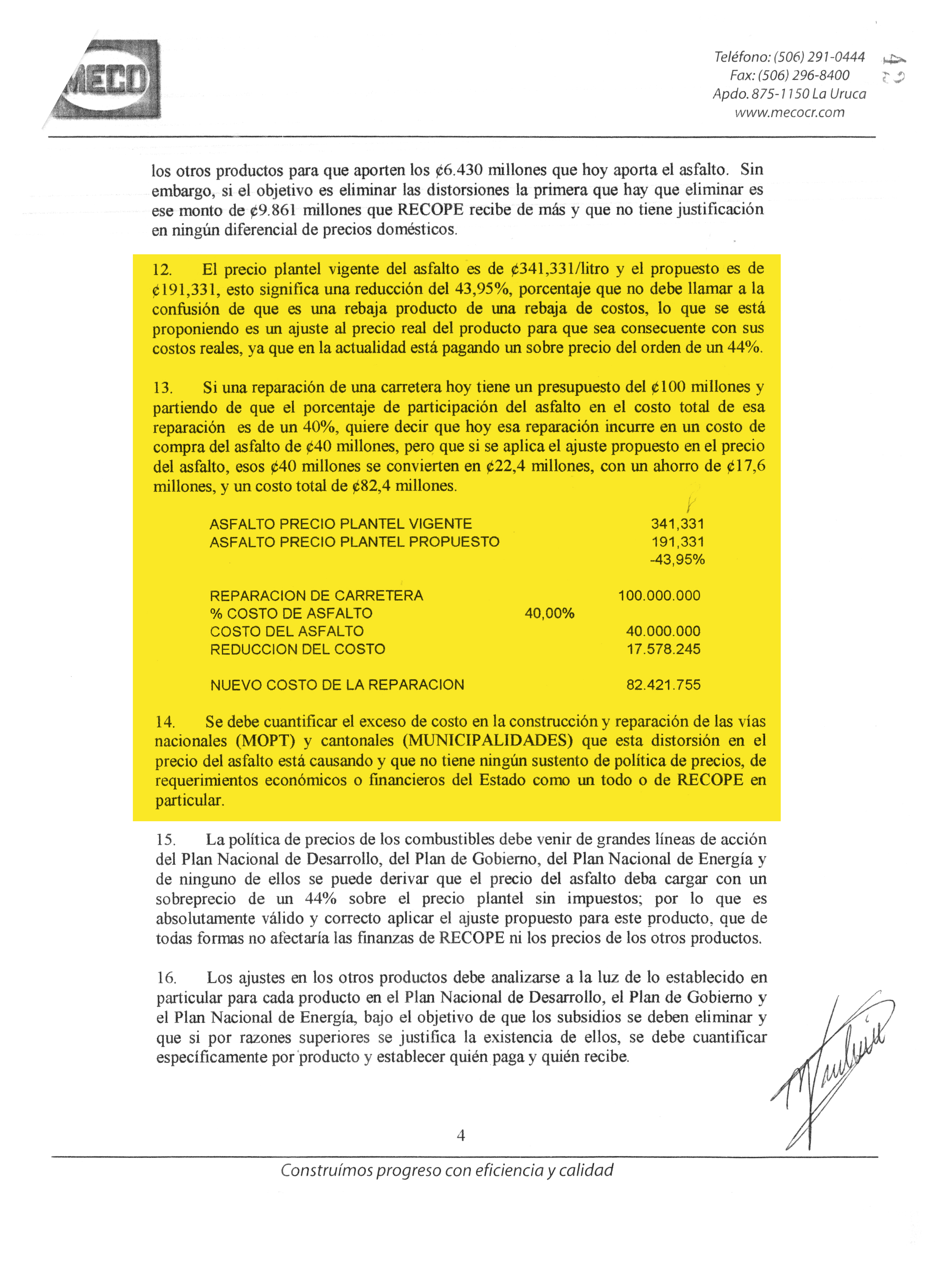 The National Highway Board does not know if the price of road repairs decreased as a result of the lower price of asphalt, generated by the subsidy. This product had already benefitted in 2006 because of a ¢128 per liter decrease, when chief regulator Herrero eliminated a