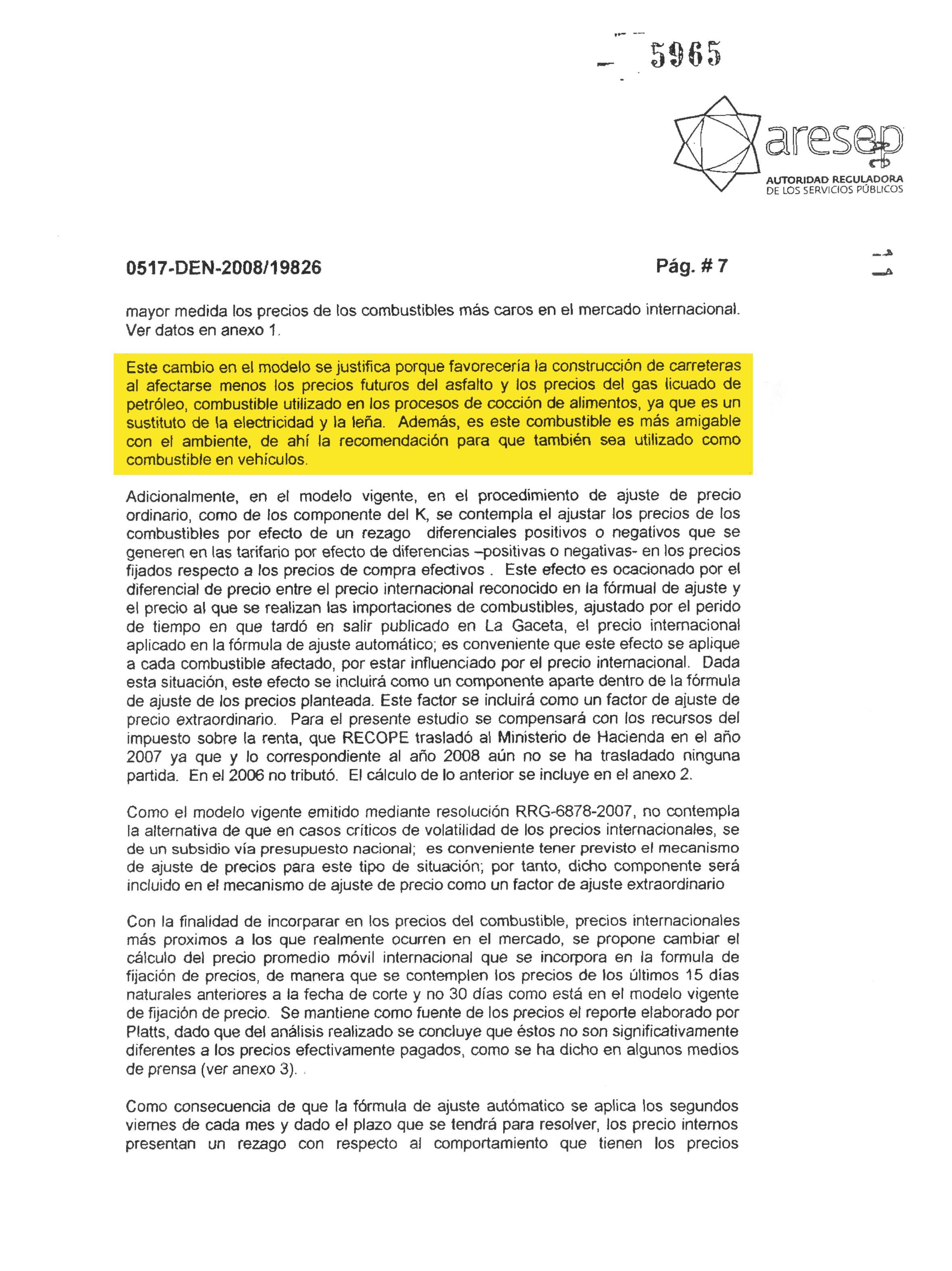 ARESEP approved the change. This caused that the fuels which are the most used and the ones with the highest international price (gasoline and diesel) pay more for the K factor, subsidizing those with lower demand and price (asphalt and LPG gas). “This model change is justified because it would favor road construction since the future prices of asphalt will be less affected, as are those of liquid propane gas, which is used to cook food and is a substitute for electricity and firewood,” the report states.