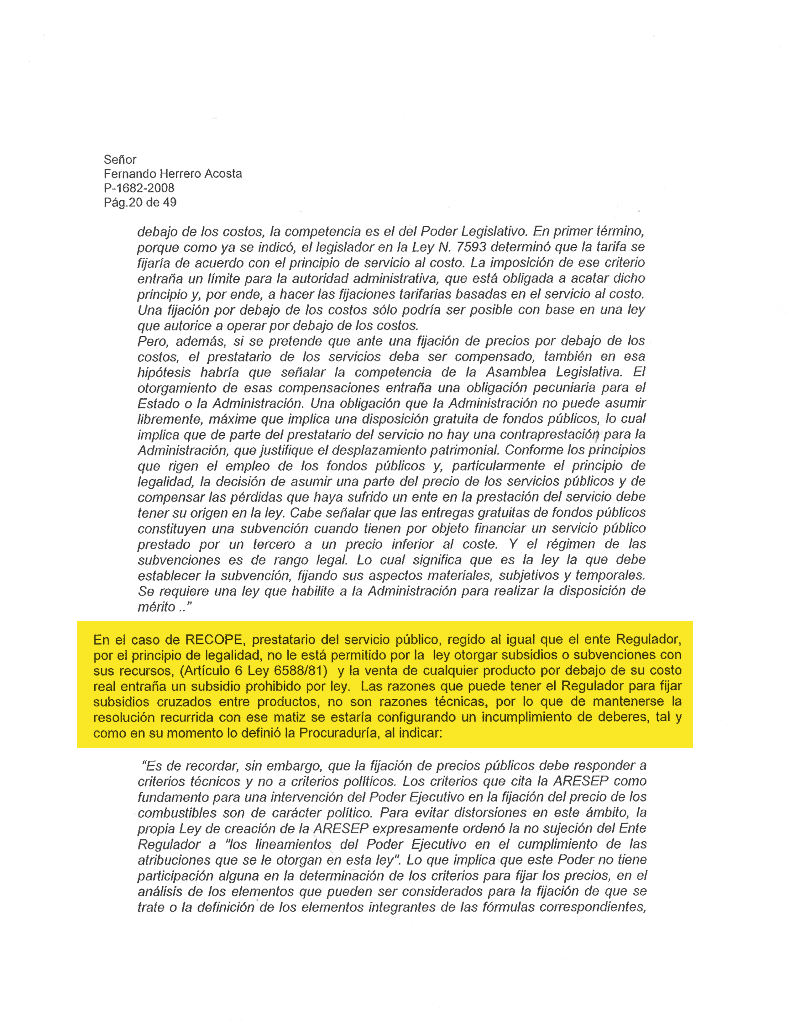 Fernando Herrero, chief regulator at the time, approves a technical report aimed at changing the formula to define the prices of fuels. It is recommended that RECOPE’s costs (K factor) be acknowledged as a percentage, based on the import price for each product. Until then, they were estimated as a fixed amount. That year it was ¢58 per liter for all fuels. With the K% RECOPE’s real costs are not considered; among others, they include insurance, shipping, and inventory. Five months before, industrialists complained about the prices of gas and bunker fuel.