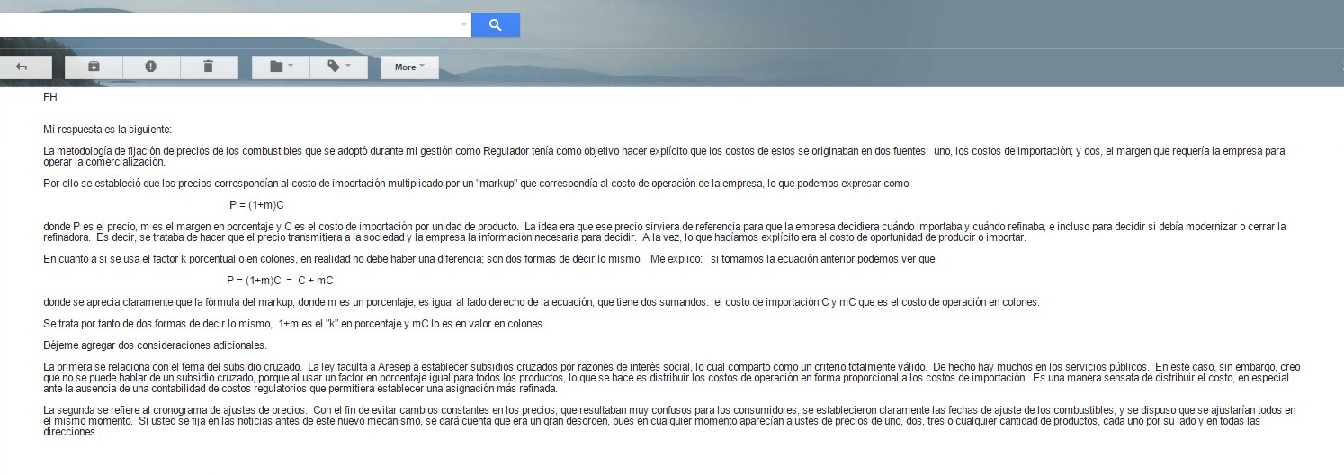 An investigation by La Nación on the impact of the change in the formula, made by the Regulatory Body, found that from 2009 through September 2014, diesel consumers have additionally paid almost ¢73.5 billion; users of gasoline have paid an extra ¢29.5 billion. Meanwhile, companies using asphalt have saved ¢11.6 billion and LPG gas buyers over ¢33 billion.