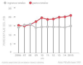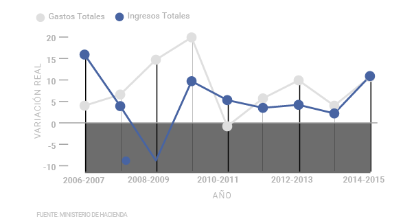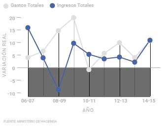 "Los ingresos totales del gobierno crecieron 10,9% en términos reales de 2014 a 2015, mientras los gastos lo hicieron en un 10,7%. La diferencia fue de sólo 0,2 puntos porcentuales. Esto no ocurría desde el periodo 2010-2011, cuando los ingresos tuvieron un aumento real del 5% y los gastos una caída del 0,8%."
