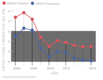 Si bien el déficit fiscal se mantuvo por debajo del 6% del PIB, este indicador aumentó entre 2014 y 2015, al pasar de un 5,7% del producto interno bruto (PIB) a un 5,9% (0,2 puntos porcentuales). No obstante, hubo una leve reducción en el déficit primario (sin incluir intereses) de 0,05 puntos porcentuales. Desde el 2011 no caía el déficit primario.