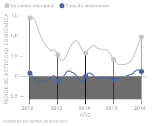 A enero de 2016 la variación en el Índice Mensual de Actividad Económica (IMAE) (según su tendencia ciclo, sin estacionalidades) acumuló siete meses de crecimiento consecutivos. Esta variación positiva mensual no se daba desde abril de 2014. La variación interanual en enero fue de 4,9%, la más alta registrada en el mismo mes de los últimos tres años.