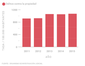 Es cierto que las denuncias de asalto a personas y viviendas disminuyeron de 2014 a 2015, según datos del Organismo de Investigación Judicial. No obstante, si se calcula la tasa de delitos contra la propiedad (robos, hurtos y asaltos) por cada 100.000 habitantes esta aumentó un 1,7% entre dichos años