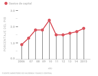 La inversión en capital fue del 1,9% del producto interno bruto (PIB) durante 2005, la más alta de los último cinco años cuando rondó entre el 1,5% y el 1,7%. En la última década, la inversión más alta en este rubro se realizó en 2010 cuando representó un 2,4% del PIB.