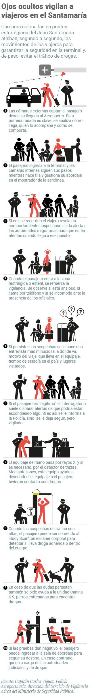En el aeropuerto internacional Juan Santamaría, por donde circulan más de 12.000 pasajeros diarios, se intenta minimizar esa posibilidad. Con tecnología y capacitación al personal se fortalece la detección de sospechosos de tráfico internacional.