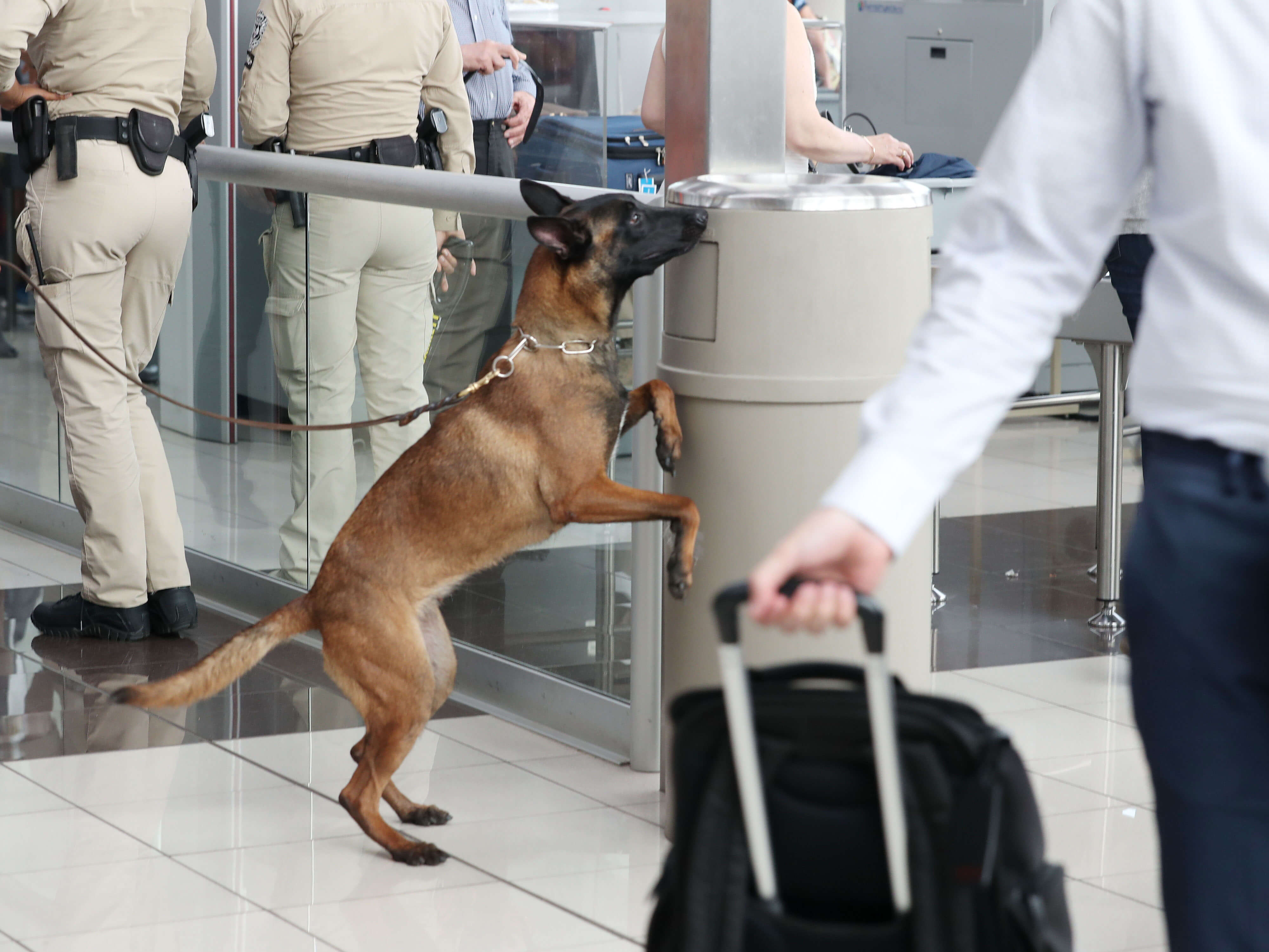 Los agentes fueron donados por la embajada de los Estados Unidos y son tratados con alta estima por parte de los oficiales de seguridad en la terminal por la certeza de su trabajo.