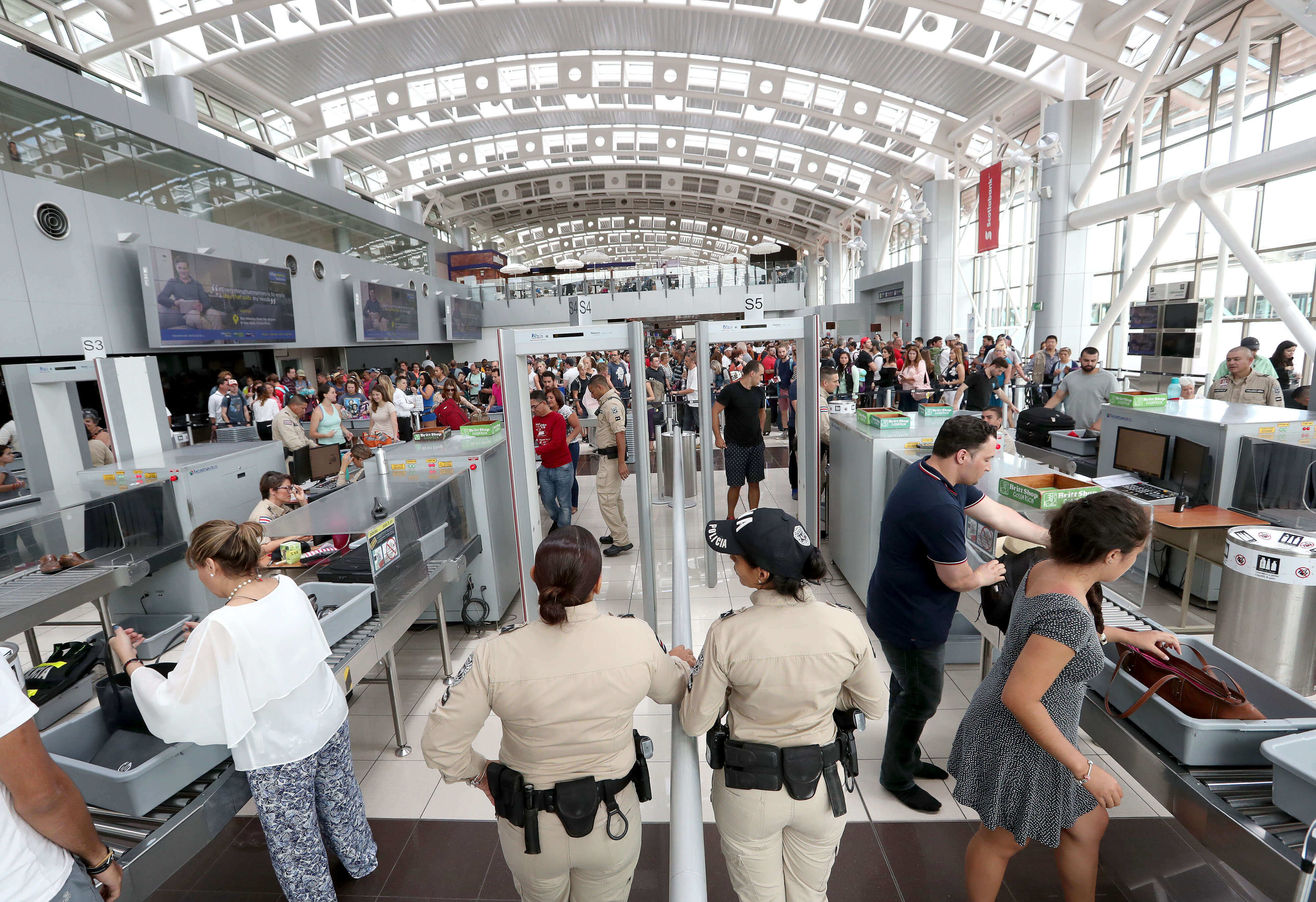En el aeropuerto internacional Juan Santamaría circulan más de 12.000 pasajeros diarios. Al menos un centenar han sido arrestado por llevar cocaína en sus cuerpos o equipajes entre 2012 y junio pasado.