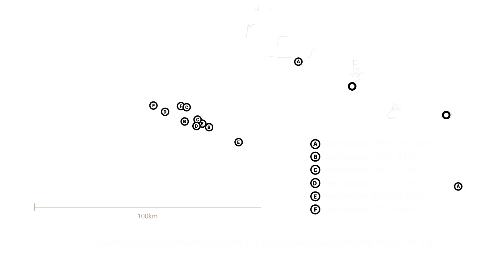 Entre 1998 y este año se han reactivado 283,5 kilómetros de línea férrea. Esto representa una cuarta parte de todo el derecho de vía del ferrocarril, que tiene casi 1.100 kilómetros de extensión.