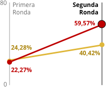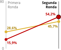 Por su parte, la agrupación liderada por Fabricio Alvarado no conquistó ningún nuevo territorio pese a que obtuvo 300.000 votos más que en la primera vuelta.