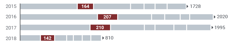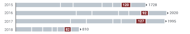 Fuente: Ministerio de Seguridad Pública. Los datos del 2018 son al mes de mayo.