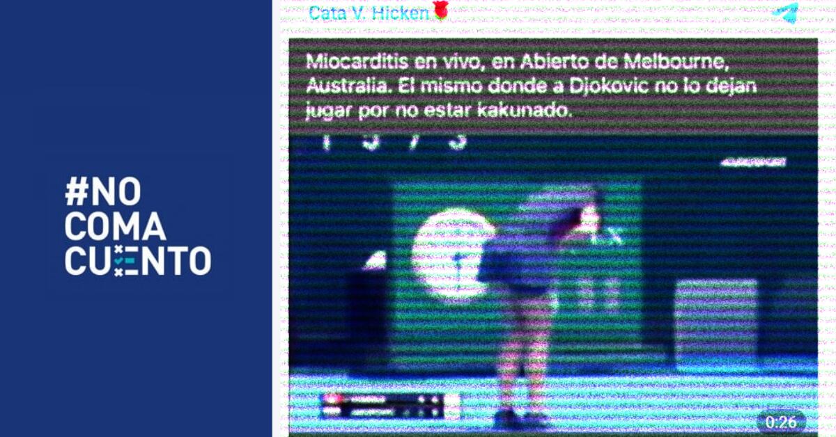 “Miocarditis en vivo, en Abierto de Melbourne, Australia. El mismo donde a Djokovic no lo dejan entrar por no estar kakunado”, publicó en Telegram el canal Cata V. Hicken. Las mismas especulaciones han circulado en otras latitudes durante las últimas semanas, desde que el gobierno de Australia expulsó al tenista serbio Novak Djokovic del país y le impidió participar de la competición, por no estar vacunado contra la covid-19.