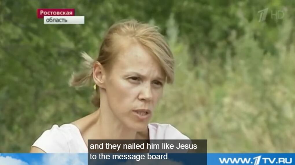 El caso más emblemático data del 2014, cuando medios oficiales rusos publicaron un video, en el cual se ve a una mujer que decía ser refugiada y aseguraba que los soldados ucranianos habían crucificado públicamente a un niño de tres años frente a su madre, “como si fuera Jesús”, mientras el pequeño gritaba, sangraba y lloraba.