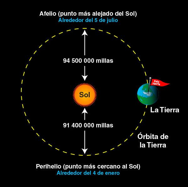 En contraste, cerca del 4 de enero ocurre el momento de mayor cercanía entre la Tierra y el Sol, llamado perihelio, en el que la separación se reduce a 147,5 millones de kilómetros.