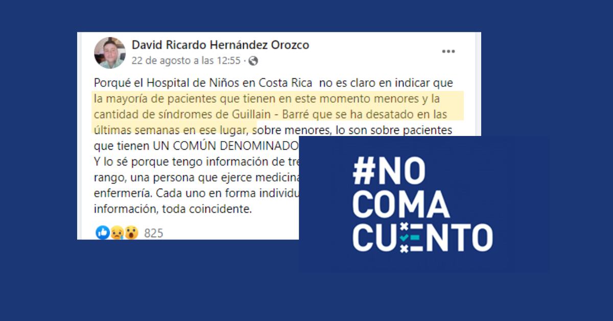 La publicación sobre la supuesta oleada de casos de síndrome Guillain-Barré en niños la hizo el usuario David Ricardo Hernández Orozco, quien utiliza su página de Facebook para difundir desinformación sobre las vacunas contra la covid-19. En esta publicación, aseguró que los menores presuntamente afectados con esta patología comparten “un común denominador”, en referencia a las vacunas.