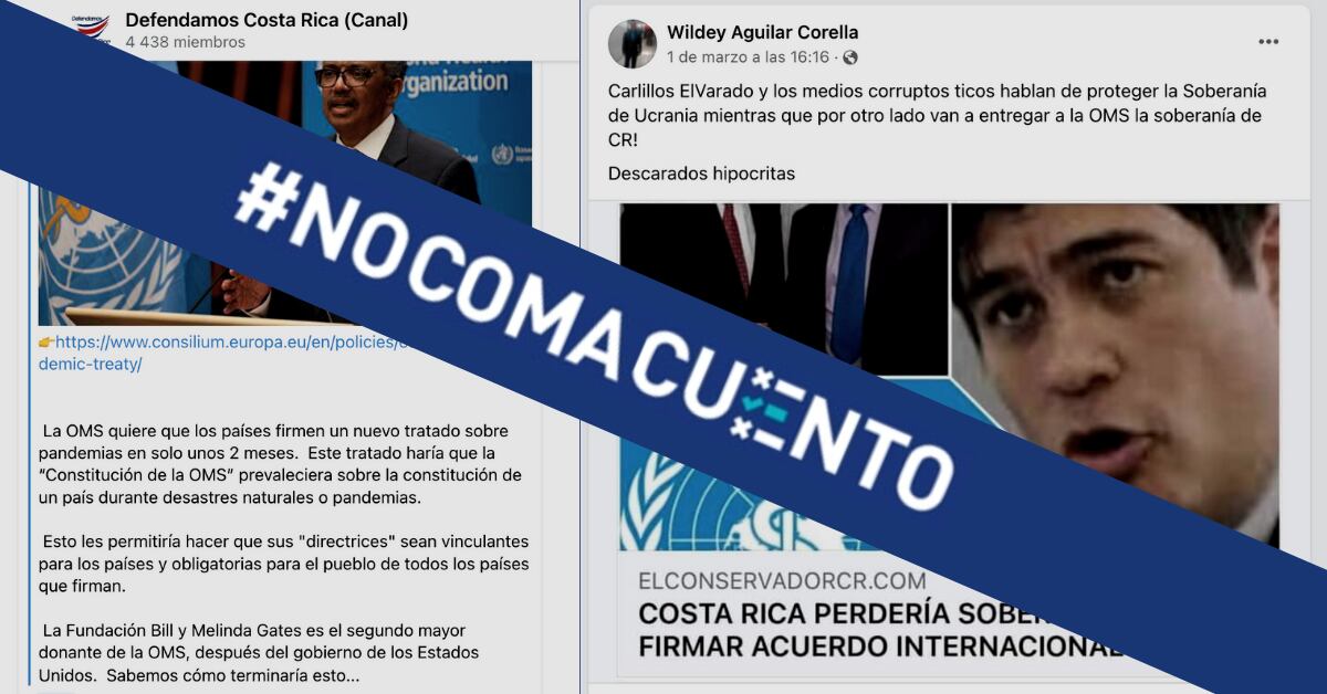 Es mentira que el Gobierno de Costa Rica esté a punto de firmar un tratado de la Organización Mundial de la Salud (OMS) sobre pandemias que vaya a estar por encima de la Constitución Política de Costa Rica, o que le vaya a quitar la soberanía al país, como lo afirman grupos conspiracionistas y antivacunas en redes sociales.