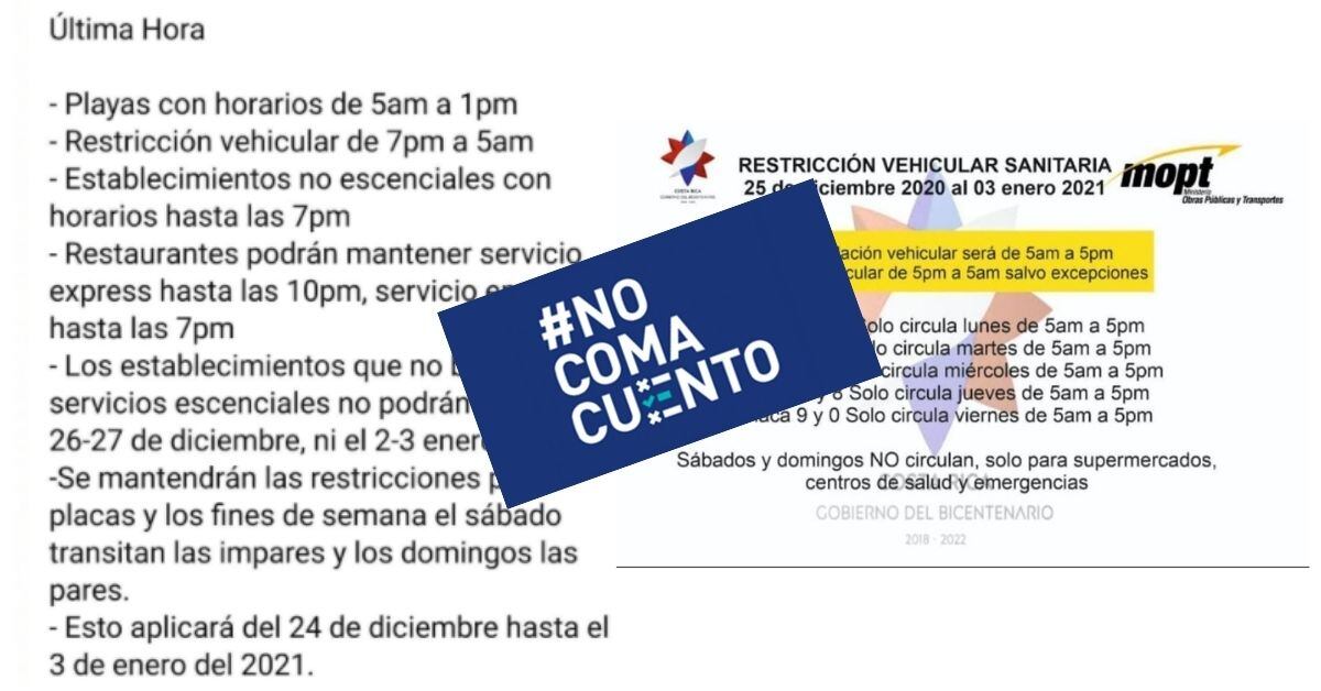 Uno de los textos enumera una serie de limitaciones que, supuestamente, se impondrán al tránsito vehicular, la permanencia en playas y el funcionamiento de comercios entre el 24 de diciembre y el 3 de enero.