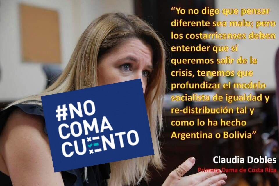 La frase que se le atribuye erróneamente a la primera dama es: “Yo no digo que pensar diferente sea malo; pero los costarricenses deben entender que si queremos salir de la crisis, tenemos que profundizar el modelo socialista de igualdad y redistribución como lo ha hecho Argentina o Bolivia”.