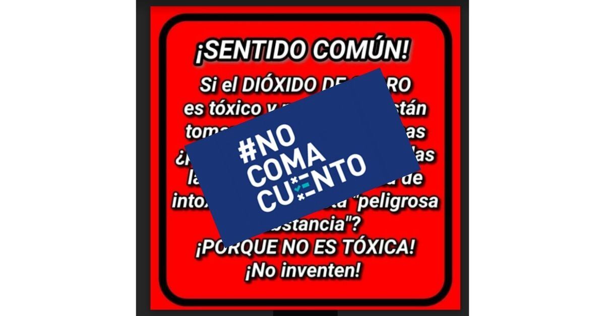 La gráfica que se difunde en redes erróneamente dice lo siguiente: “Si el dióxido de cloro es tóxico y mortal y lo están tomando miles de personas, ¿por qué no están abarrotadas las salas de emergencia de intoxicados por esta ‘peligrosa sustancia’? ¡PORQUE NO ES TÓXICA! ¡No inventen (sic)”.