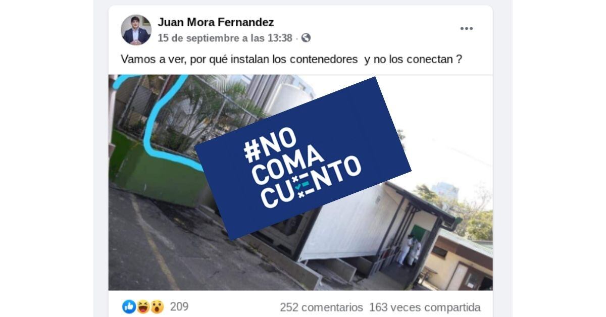 “Vamos a ver, por qué instalan los contenedores y no los conectan?”, dice la descripción de la imagen que subió una página identificada en Facebook como “Juan Mora Fernández” .
