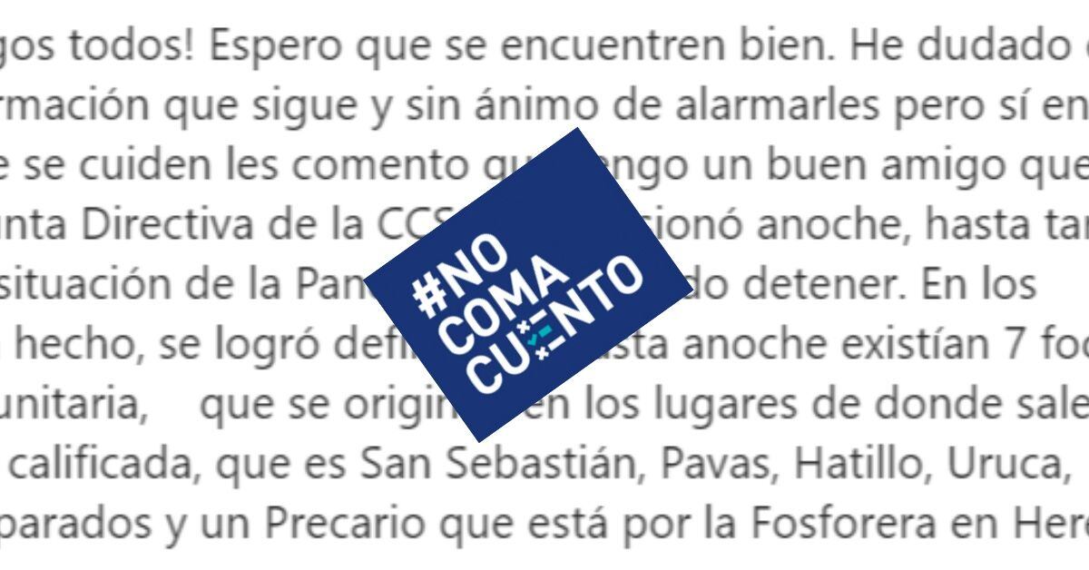 Esta información forma parte del proyecto #NoComaCuento, una iniciativa de La Nación que busca analizar la veracidad de la información que circula en redes sociales. Usted puede formar parte de este proyecto enviándonos información que le parezca falsa o poco confiable al WhatsApp 6420-7160 o al correo nocomacuento@nacion.com.