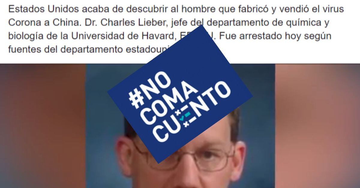 Es falso que en los Estados Unidos detuvieron al nanocientífico Charles Lieber, de la Universidad de Harvard, por fabricar y vender el coronavirus covid-19 a China, como se afirma en mensajes que circulan en redes sociales.