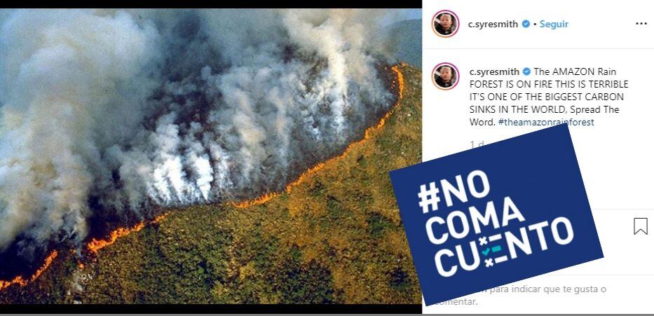 La imagen fue compartida por el actor Jaden Smith en su cuenta de Instagram y superó los 1,2 millones de likes con el mensaje “el bosque de la Amazonía se está incendiando, esto es terrible”.