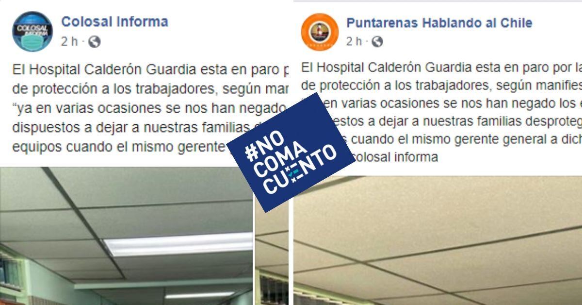 “El Hospital Calderón Guardia está en paro por la negación de los equipos de protección a los trabajadores, según manifiestan los participantes: “ya en varias ocasiones se nos han negado los equipos y no estamos dispuestos a dejar a nuestras familias desprotegidos por la falta de los equipos cuando el mismo gerente general a dicho que el país está cubierto”, dice uno de los posteos con información falsa que ya se compartió 644 veces.