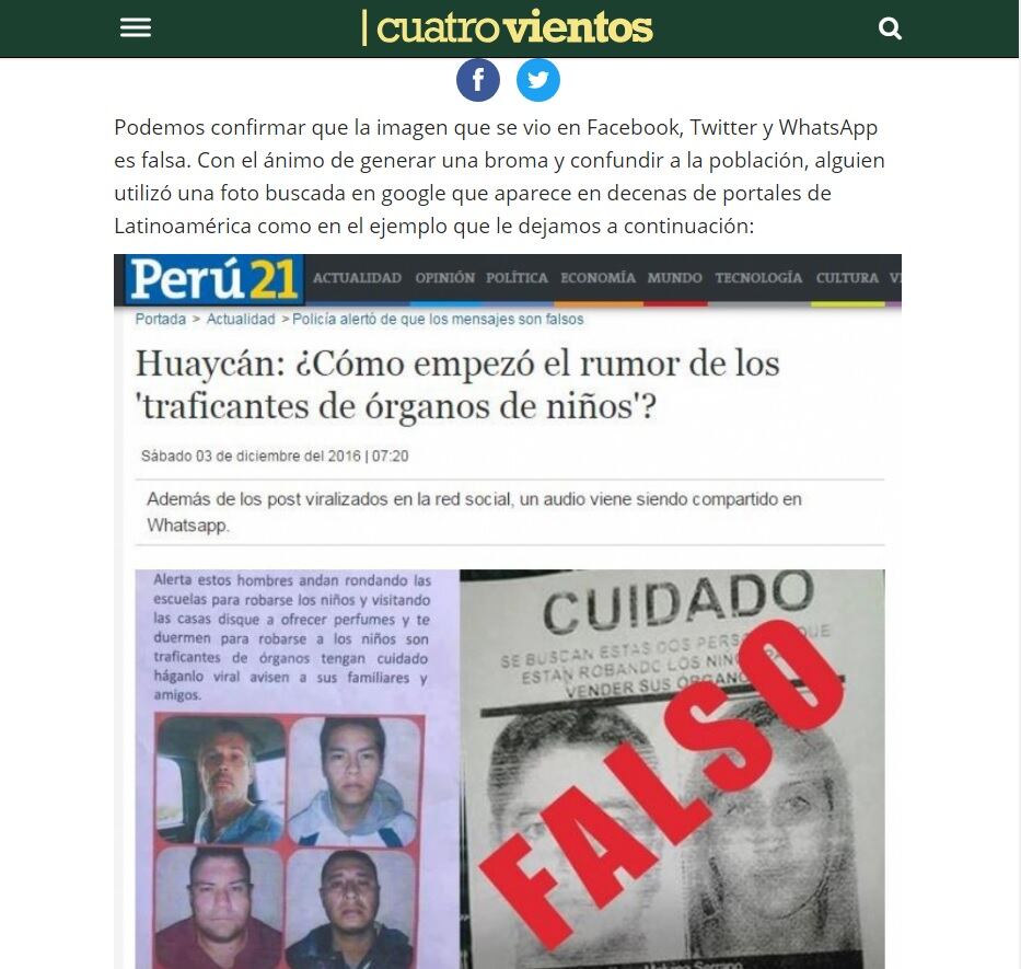 Este tipo de información falsa sobre secuestros de menores ya provocó altercados en países como India, donde un hombre fue linchado y asesinado por la difusión de un rumor sobre el supuesto secuestro de un niño.