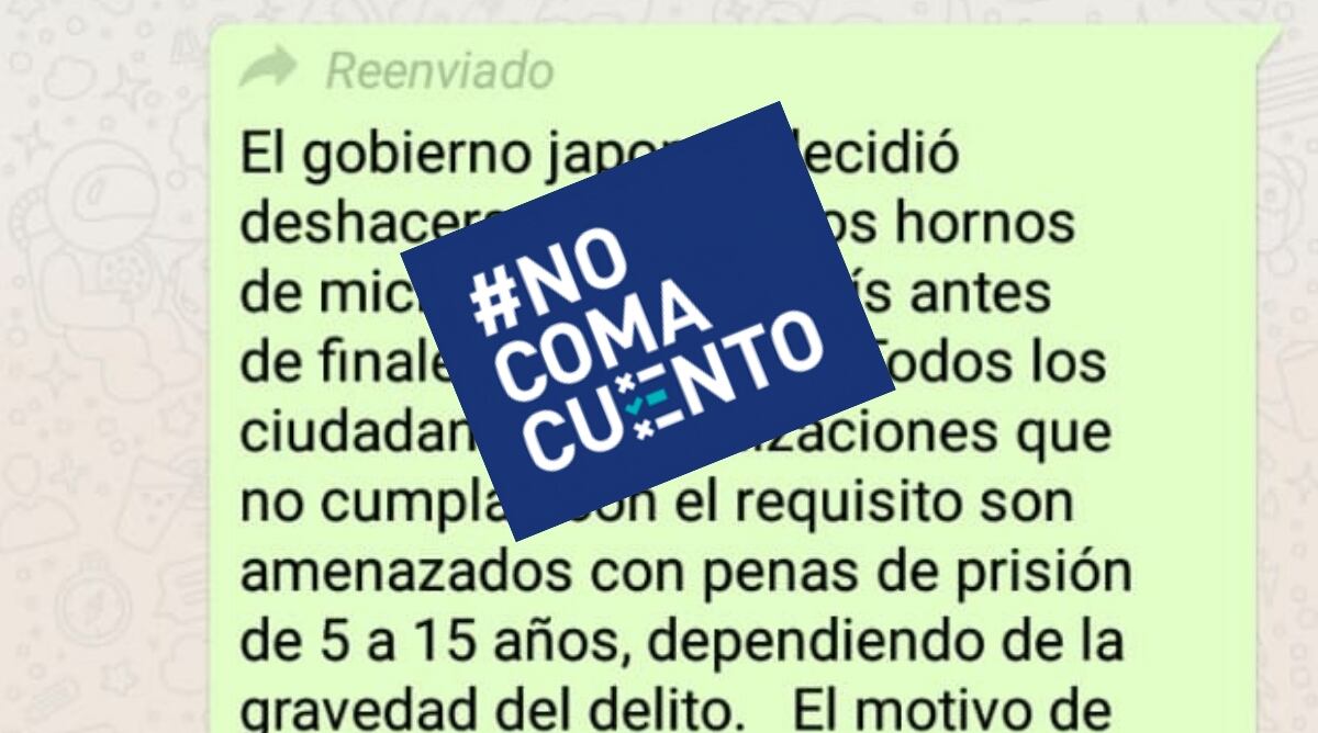 Japón no prohibió el uso de los hornos de microondas, ni impuso penas de 5 a 15 años de cárcel para quienes los usen, como afirma un mensaje que se comparte, de forma masiva, por mensajes de WhatsApp.