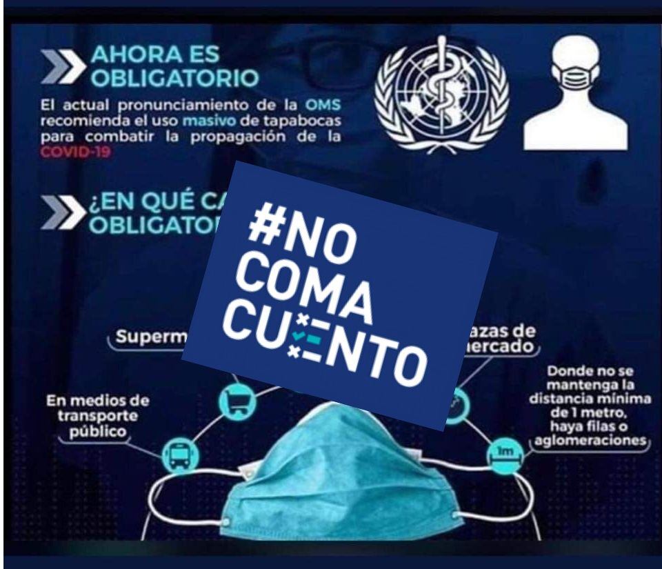 La información errónea dice que el supuesto nuevo criterio de la OMS establece que todas las personas deben usar mascarillas en medios de transporte público, supermercados, farmacias, bancos, entre otros lugares públicos.