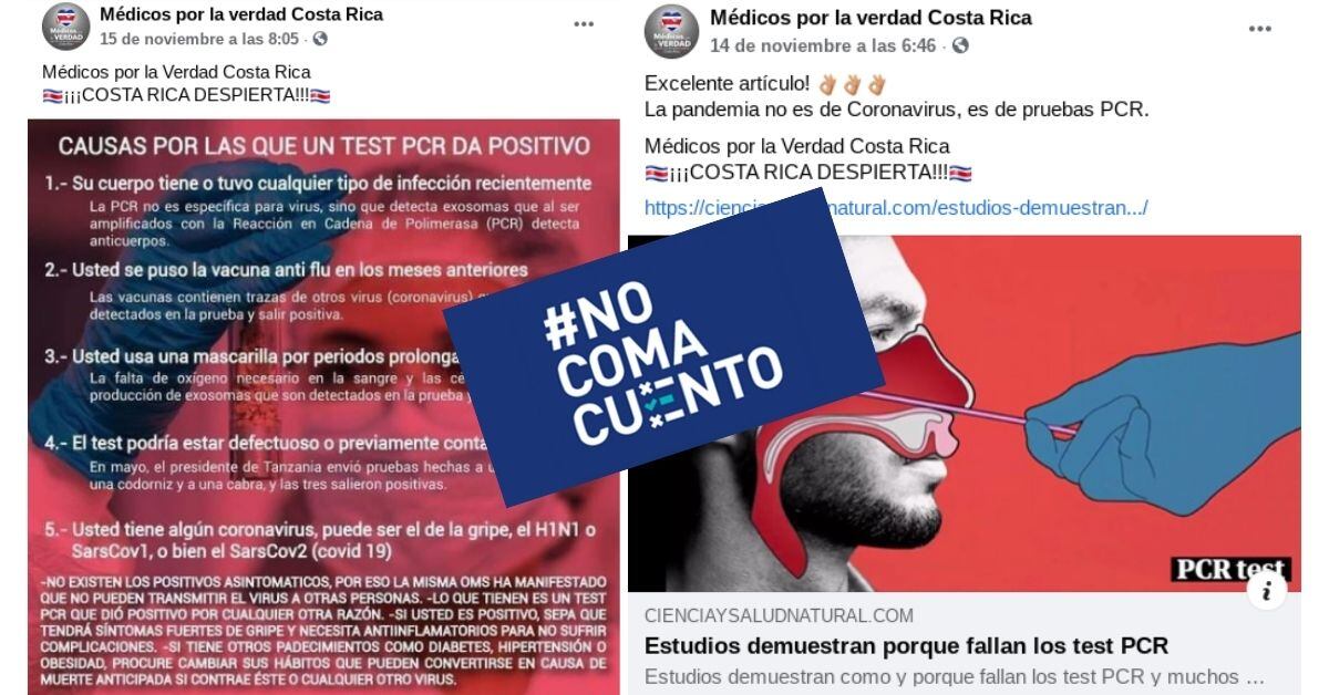 Dos publicaciones en la página de Facebook “Médicos por la Verdad Costa Rica” desinforman sobre falsos positivos que supuestamente generan las pruebas de PCR con las que se detecta el SARS-CoV-2.