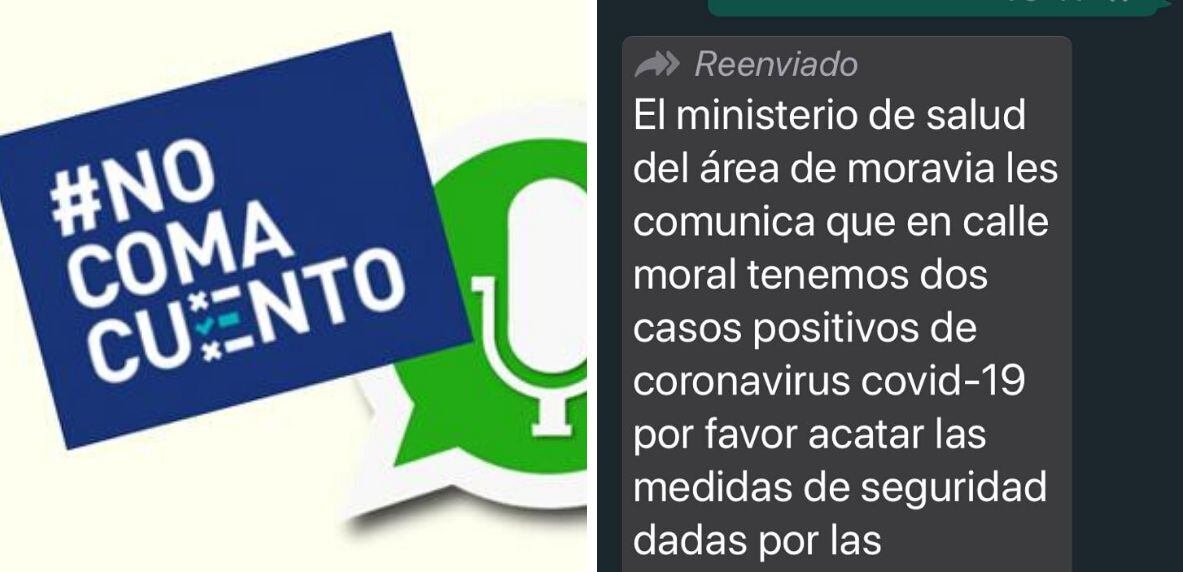 Dos de los casos más recientes que emplean ese método para desinformar son un mensaje que asegura que en una calle específica de Moravia hay dos casos confirmados de covid-19 y un audio que brinda la identidad de supuestos casos positivos en Grecia.