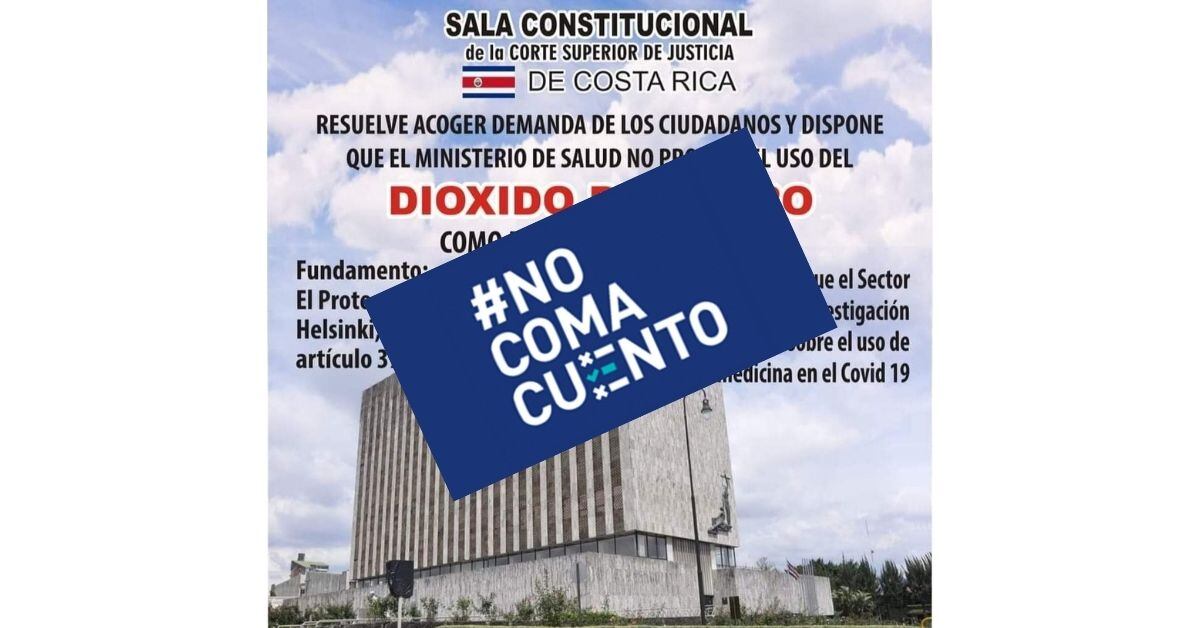 En realidad, la Sala IV no ha emitido ningún criterio sobre la pertinencia del uso del dióxido de cloro como tratamiento contra la enfermedad causada por el nuevo coronavirus.