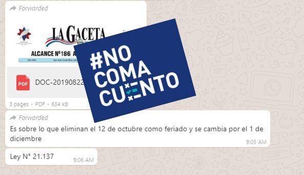 Esta información forma parte del proyecto #NoComaCuento, una iniciativa de La Nación que busca analizar la veracidad de la información que circula en redes sociales. Usted puede formar parte de este proyecto enviándonos información que le parezca falsa o poco confiable al WhatsApp 6420-7160 o al correo nocomacuento@nacion.com.