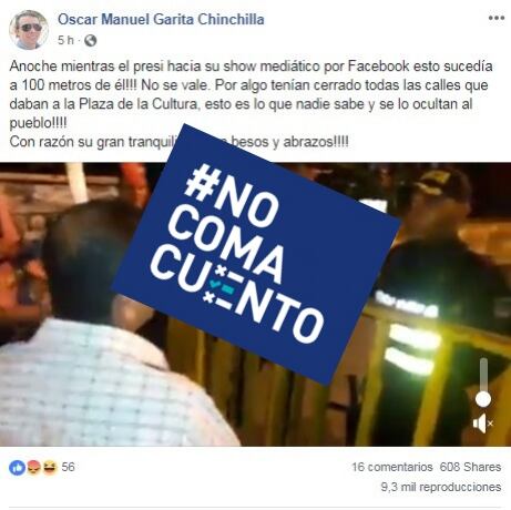 Un video grabado en las cercanías de la Asamblea Legislativa se comparte en redes sociales dando a entender que el presidente Carlos Alvarado cerró los accesos a la Plaza de la Cultura, la noche del miércoles, para realizar una transmisión en vivo por Facebook.