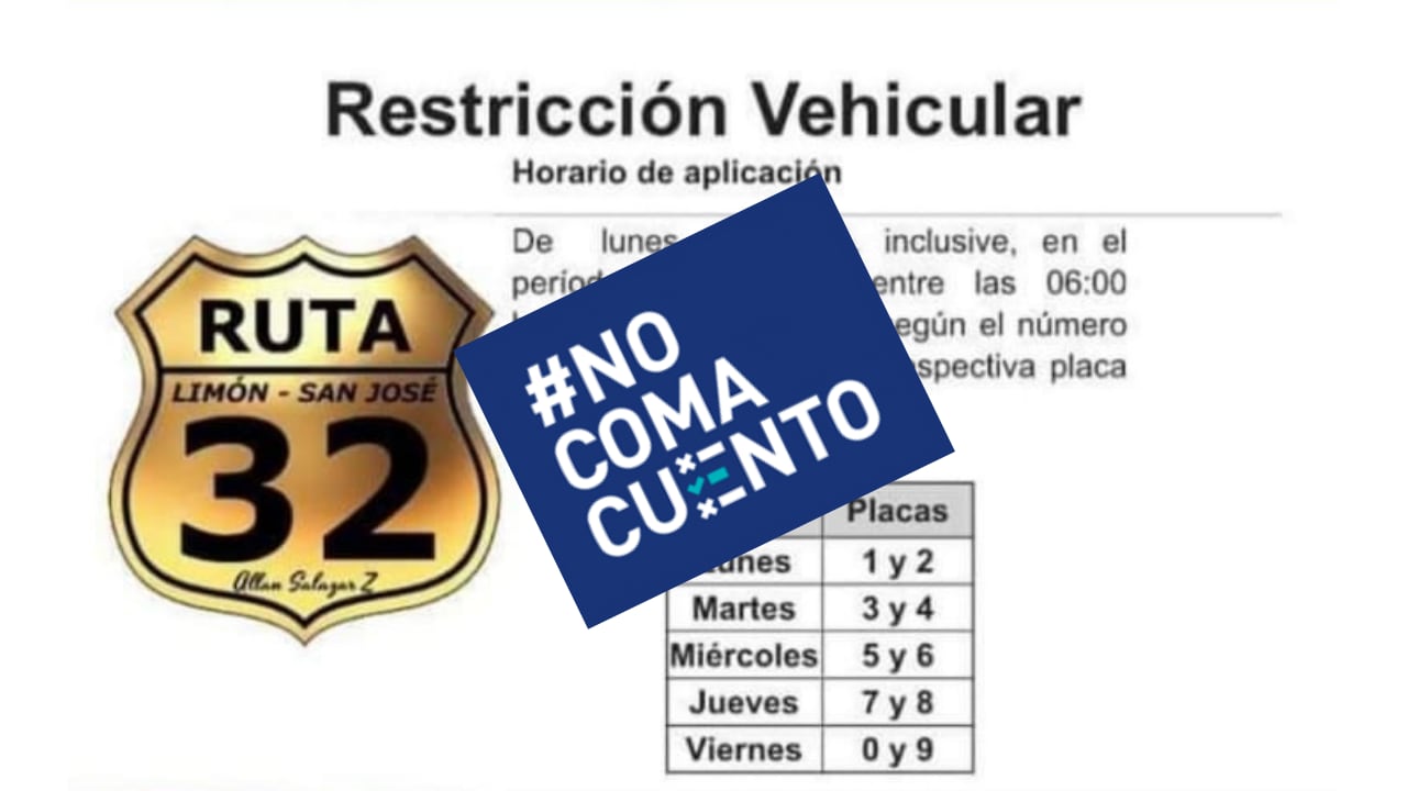 El Ministerio de Obras Públicas y Transportes (MOPT) no amplió la restricción vehicular a la ruta 32, que comunica San José con Limón, como afirma un montaje fotográfico que se comparte en WhatsApp.
