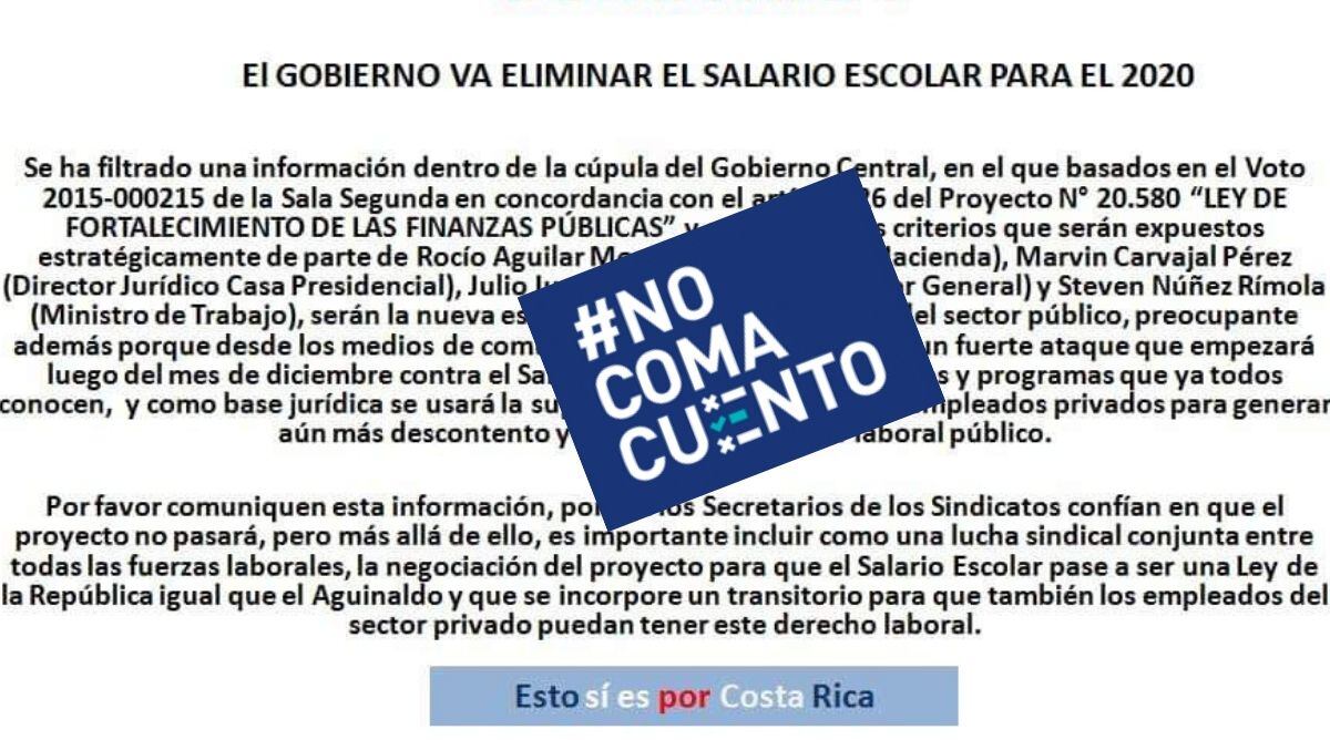 LEA MÁS: #NoComaCuento: Es falso que los salarios de más de ¢817.000 pagarán un 13% de IVA