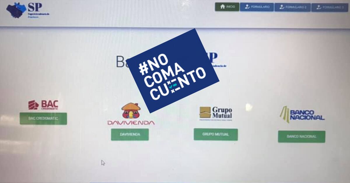 El sitio fraudulento le pide al usuario registrarse e ingresar la clave del banco de su preferencia; además, suplanta las identidades de la Superintendencia de Pensiones y de entidades financieras como el Banco Nacional, Davivienda y BAC Credomatic.