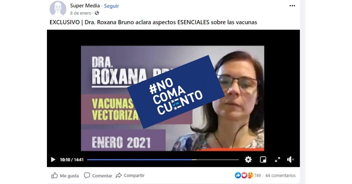 No es cierto que la vacuna contra la covid-19 sea más peligrosa que la enfermedad, como lo quiere hacer creer un video viral de la inmunóloga argentina Roxana Bruno.