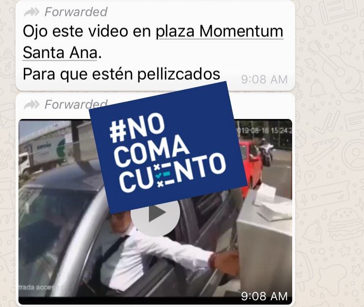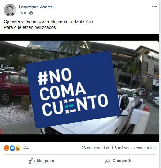 No es cierto que en Momentum Lindora, en Santa Ana, estén asaltando a los conductores en el momento en que ingresan al parqueo de ese centro comercial, como se insinúa en un video que se comparte en Facebook y WhatsApp.