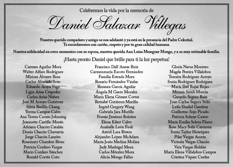 Para publicar en nuestra sección de obituarios contáctenos al 4080-6701, escríbanos al whastapp 6420-2118 o al correo publicidad@nacion.com