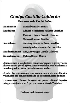 Para publicar en nuestra sección de obituarios contáctenos al 4080-6701, escríbanos al whastapp 6420-2118 o al correo publicidad@nacion.com
