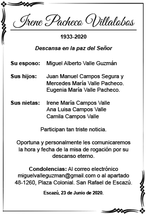 Para publicar en nuestra sección de obituarios contáctenos al 4080-6701, escríbanos al whastapp 6420-2118 o al correo publicidad@nacion.com