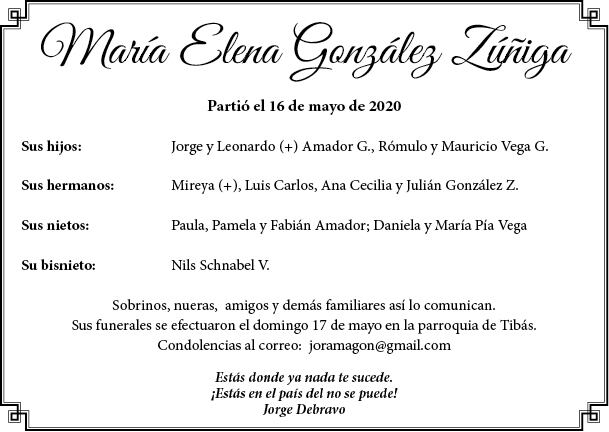 Para publicar en nuestra sección de obituarios contáctenos al 4080-6701, escríbanos al whastapp 6420-2118 o al correo publicidad@nacion.com.