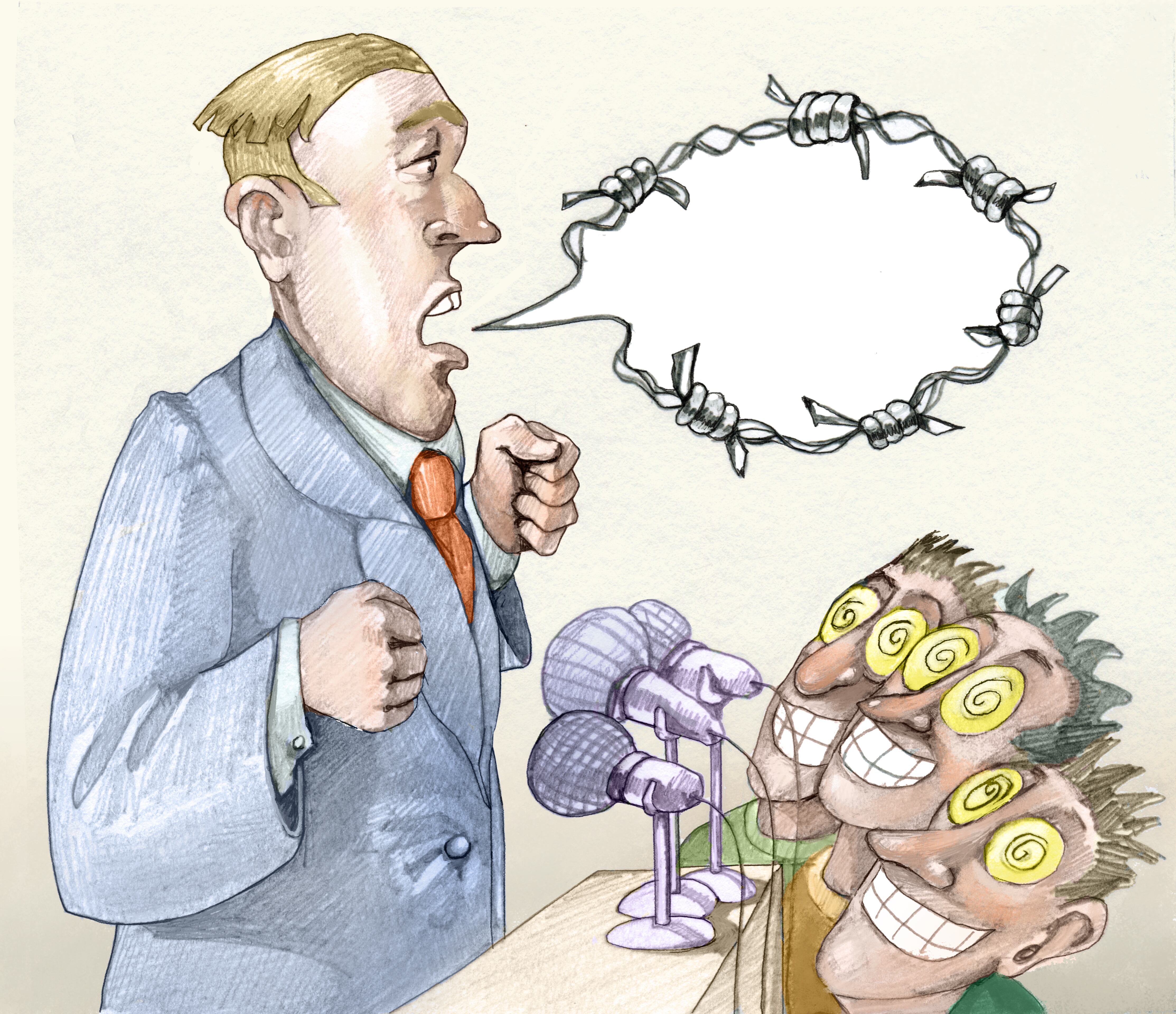 La sistematización en el poder de un discurso implacable y altamente ofensivo contra todo aquello que estorbe su camino es una diatriba que azuza las disensiones y disconformidades que yacen en el subsuelo psíquico de los sectores marginales, por ejemplo, el nazismo explotó la fórmula a costa de las minorías étnicas.